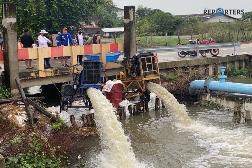 หน่วยงานที่กี่ยวข้องใน อ.บางบัวทอง จ.นนทบุรี นำเครื่องสูบน้ำไปติดตั้งบริเวณสะพานเลียบคลองบางไผ่ หมู่ 5 เพื่อระบายน้ำจากคลองถนนลงคลอง ขณะที่ชาวบ้านในหมู่บ้านจัดสรรกว่า 1,000 หลังโดยรอบ ทยอยขนของขึ้นที่สูง โดยรถยนต์ รถจักรยานยนต์ ที่ต่างนำมาจอดไว้ชั่วคราวภายในซอยจันทร์ทองเอี่ยม เพื่อเลี่ยงความเสียหาย