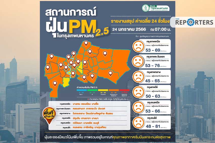 PM 2.5 เกินค่ามาตรฐานหลายพื้นที่ คนกรุงฯ อ่วม กระทบสุขภาพ 59 พื้นที่
