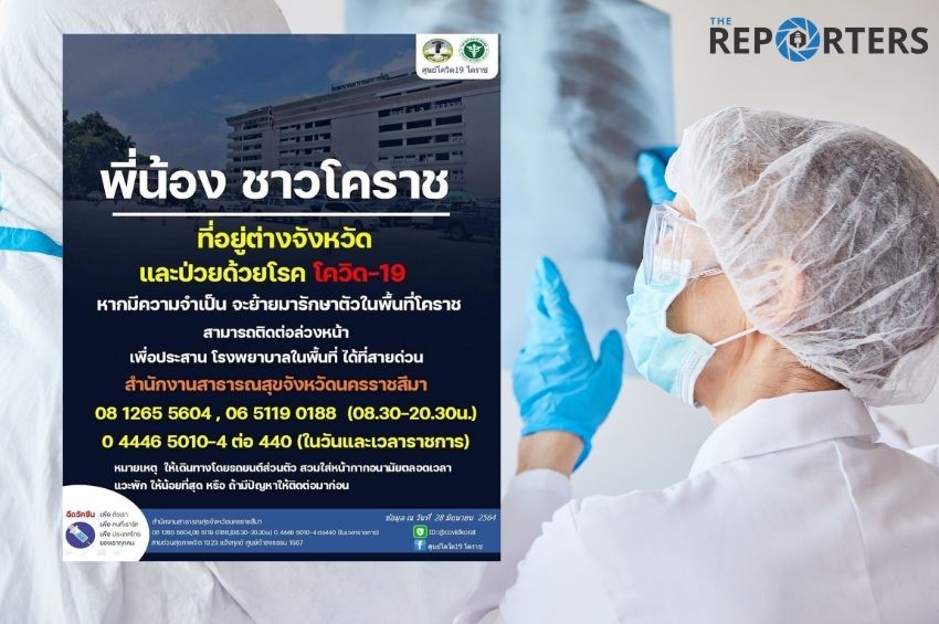 นครราชสีมาแจ้งชาวโคราชป่วยโควิด-19 ที่จำเป็นต้องย้ายมารักษาติดต่อล่วงหน้า