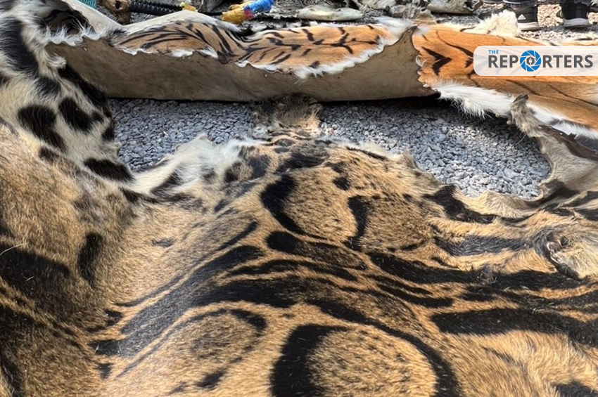 จากการตรวจค้นห้องพัก เจ้าหน้าที่พบซากหนังเสือหลายชนิด จำนวน 6 ผืน ประกอบด้วย หนังเสือโคร่งความยาว 3.10 เมตร กว้าง 80 ซม. , หนังเสือดาว กว้างกว่า 2 เมตร 2 ผืน , หนังเสือลายเมฆ 3 ผืน , เขากวางออริกซ์ 1 เขา และลูกแมวดาว 3 ตัว (ยังมีชีวิต) จึงควบคุมตัวนายไมตรี บุญเศรษฐ์ศิริ อายุ 40 ปี ชาว อ.วิเชียรบุรี จ.เพชรบูรณ์ , นายดวงดี มูลสามารถ อายุ 32 ปี , น.ส.วันเพ็ญ ไกโคกสูง อายุ 45 ปี และนายกิน อายุ 44 ปี ชาวเมียนมา ซึ่งพบว่าอยู่รวมกันในห้องพักดังกล่าว