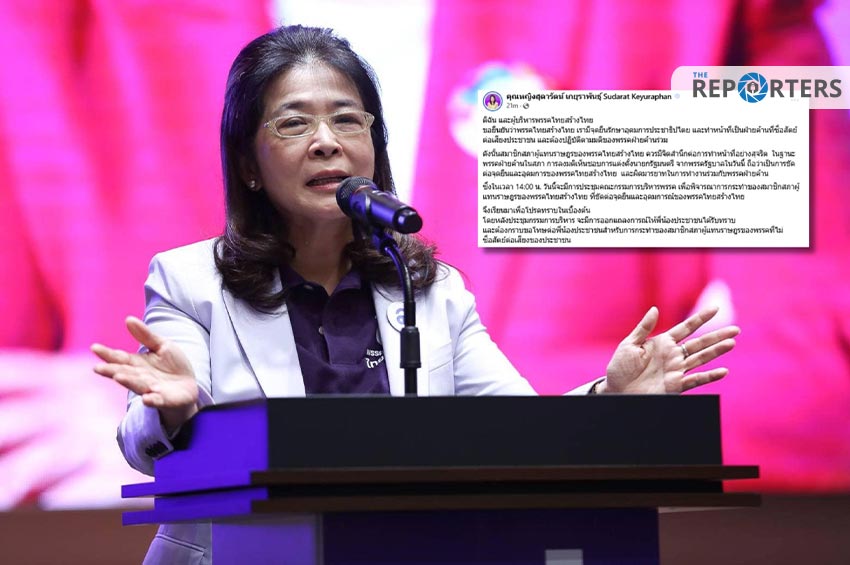 คุณหญิงสุดารัตน์ เรียกประชุม กก.บห.ด่วน พิจารณา 6 สส.ไทยสร้างไทยโหวตแพทองธาร ชี้ ผิดมารยาท ขัดจุดยืน