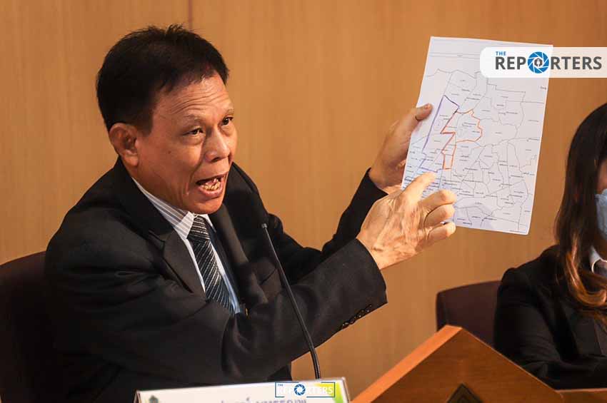 สำหรับ 50 เขตปกครองใน กทม. แบ่งเป็น 33 เขตเลือกตั้ง สิ่งที่อยากให้ทราบคือ ในการแบ่งเราปฏิบัติตามหมด ทุกเขตเป็นลักษณะชุมชนเดียวกัน ราษฎรไม่เกินเกณฑ์ที่กำหนดไว้ แบ่งเขตโดยค่าเฉลี่ยประชากรเป็นสำคัญ คือไม่ควรเกินร้อยละ 10 การแบ่งเช่นนั้นใช้ความพยายามเต็มที่ มีข้อยกเว้น ถ้าไม่ได้ ก็ให้อนุโลมในกรณีที่มีความจำเป็น