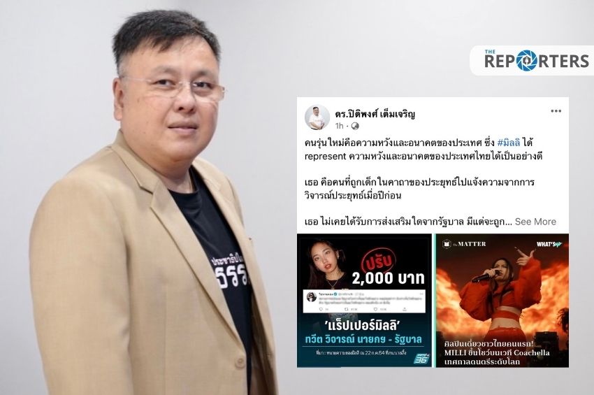 ดร.ปิติพงศ์ เต็มเจริญ หัวหน้าพรรค ‘เป็นธรรม’ โพสต์เฟซบุ๊กชื่นชม มิลลิ ดนุภา คณาธีรกุล ศิลปินไทยที่ขึ้นแสดงสดบนเวทีระดับโลกอย่าง Coachella ว่า