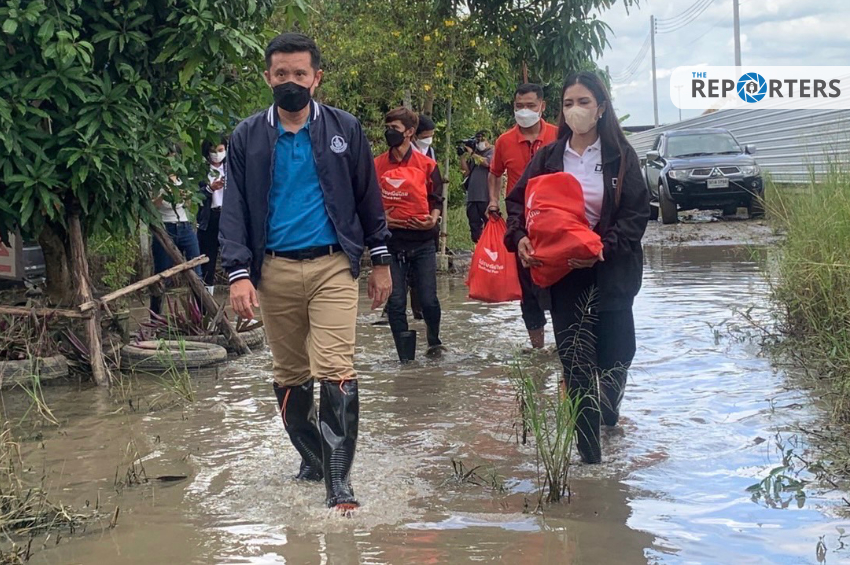 ‘ชัยวุฒิ’ ลงพื้นที่น้ำท่วม แจกถุงยังชีพริมชุมชนริมคลองพระยาสุเรนทร์