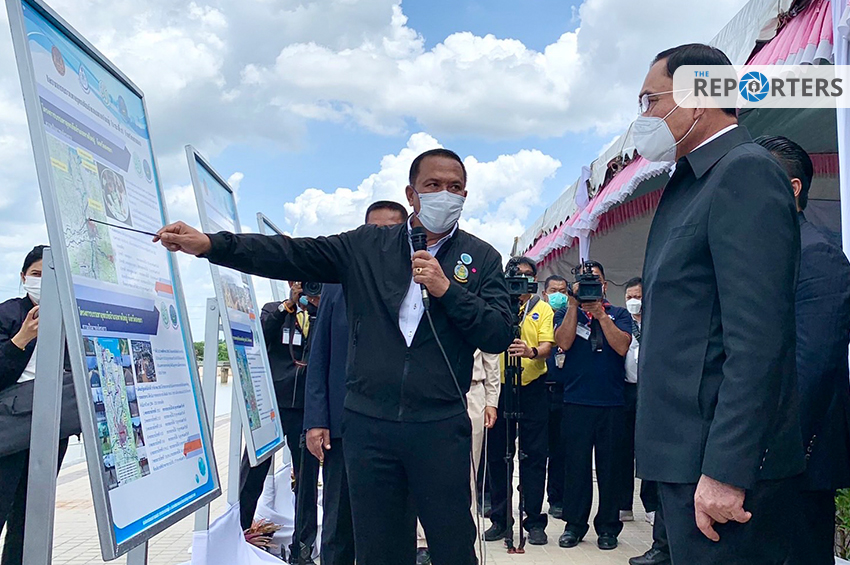 โดยเมื่อนายกรัฐมนตรีมาถึง ได้กล่าวทักทายกับคณะผู้บริหารท้องถิ่นที่มารอต้อนรับ ก่อนรับฟังรายงานสถานการณ์และการแก้ไขปัญหาน้ำในพื้นที่ ซึ่งนายกรัฐมนตรีได้สอบถามถึงอุปสรรคและปัญหา ซึ่งเป็นการแก้ไขมาจากฐานข้อมูลเดิม ว่ามีปัญหามาตั้งแต่เมื่อใด ซึ่งนโยบายของรัฐบาลคือจะลดความเสียหายให้มากที่สุดหรือไม่เสียหายเลย เพราะต้องใช้งบประมาณลงไปชดเชยเยียวยาเยอะแยะไปหมด ซึ่งก็คาดการณ์ว่าจะสามารถแก้ไขปัญหาให้ได้ นอกเสียจากปัญหาสภาวะอากาศเปลี่ยนแปลง แต่ต้องให้ประชาชนเข้าใจว่าโลกมีการเปลี่ยนแปลง