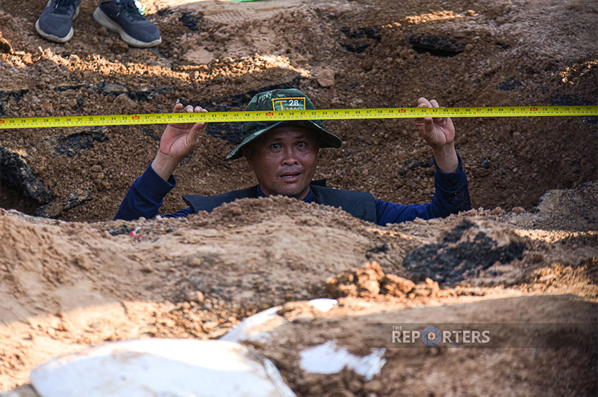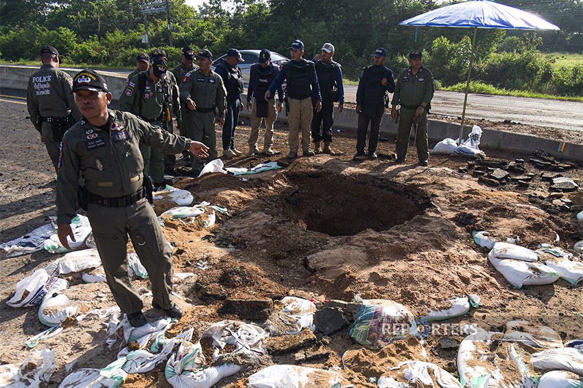 ร้อยตำรวจเอกประวิทย์ สุทธวงศ์ รองสารวัตรกองกำกับการสืบสวนตำรวจภูธร จ.ศรีสะเกษ ระบุว่า เบื้องต้นที่ยังไม่ทำลายมีประมาณ 3 จุด เราทำงานปรึกษาหารือกันวิเคราะห์หลายชุด เพื่อนำมาทำลายในวันนี้ ที่ล่าช้าเพราะกำลังรวบรวมข้อมูล และ ประสานหน่วยงานที่เกี่ยวข้องเพื่อนำเศษระเบิด BM – 21 ขึ้นมา ในส่วนของความเสียหาย ได้ติดต่อบริเวณรอบข้างเพื่อให้รับทราบถึงจุดนี้ และต้องทำลายเพราะเป็นระเบิด ซึ่งเขาสามารถยอมรับความเสียหายในส่วนนี้ได้ ในเบื้องต้นถนนเส้นนี้มี 2 จุดซึ่งเราได้ทำให้ปลอดภัยแล้ว ส่วนการดำเนินการต่อไปได้ให้ทางแขวงช่วยขุดเผื่อยังมีสะเก็ดที่หลงเหลือ แต่ยืนยันว่า ปลอดภัยแล้ว ซึ่งเราใช้คนขุด จึงขุดได้แค่นี้ และในถนนเส้นนี้ยังเหลืออีก 1 จุดที่เป็นลักษณะนี้ เพื่อให้สามารถใช้ถนนเส้นนี้ได้ เนื่องจากเป็นถนนสายหลัก เป็นความเร่งด่วนที่สุดของพื้นที่เรา