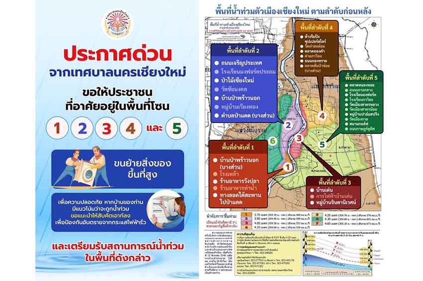 วันนี้ (3 ต.ค. 65) เทศบาลนครเชียงใหม่ ออกประกาศด่วน ขอให้ประชาชนที่อาศัยอยู่ในพื้นที่โซน 1 2 3 4 และ5 ขนย้ายสิ่งของขึ้นที่สูง เนื่องจากสถานการณ์น้ำที่สถานี P 67 (บ้านแม่แต อำเภอสันทราย) มีระดับสูงขึ้นอย่างต่อเนื่องและมีฝนตกทางตอนเหนือของจังหวัดเชียงใหม่ในเวลา ซึ่งระดับ P 1 เวลา 07.00น. อยู่ที่ระดับ 4.43 ม. คาดว่าจะถึงระดับ 4.60 ม.ในเวลา 09.00 น.