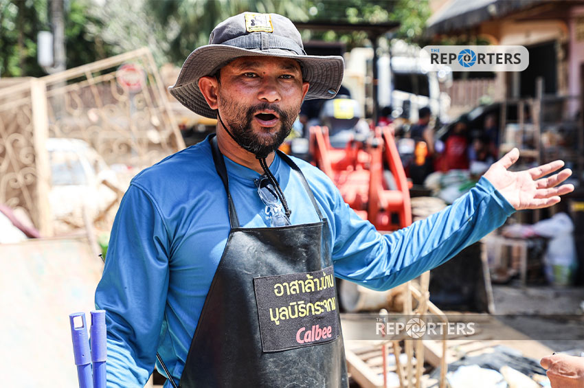 นายสถาพร ศรีแย้ม จนท.มูลนิธิกระจกเงา เปิดเผยว่าในแต่ละชุดจะมีประมาณ 15-20 คน ที่มาพร้อมรถตักขยะ รถฉีดน้ำ และอุปกรณ์ล้างบ้าน ซึ่งทางมูลนิธิจะมาสำรวจความต้องการก่อน อย่างชุมชนนี้ส่วนใหญ่เป็นบ้านชั้นเดียว ของจึงจมน้ำทั้งหมด อาสาล้างบ้านมาช่วยเก็บขยะและบ้านมา3 วันแล้วคาดว่าจะเสร็จภายในวันนี้
