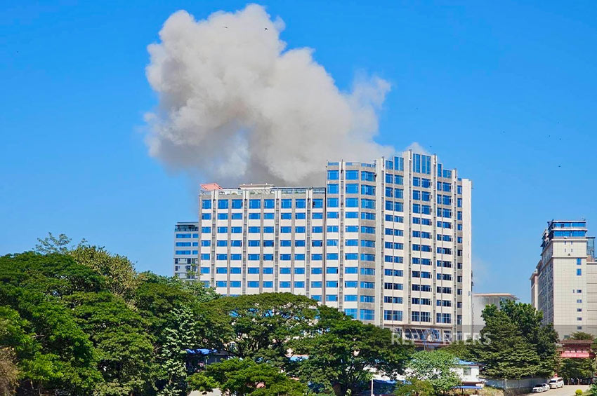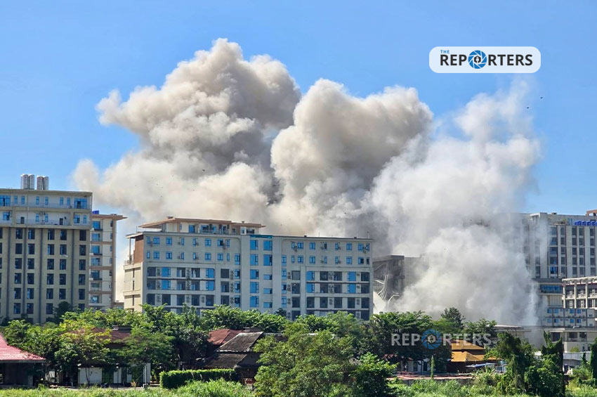 ทหารเมียนมา-BGF เปิดปฏิบัติการ ระเบิดอาคาร 12 ชั้นในชเวโก๊กโก่ ทำลายสแกมเซ็นเตอร์