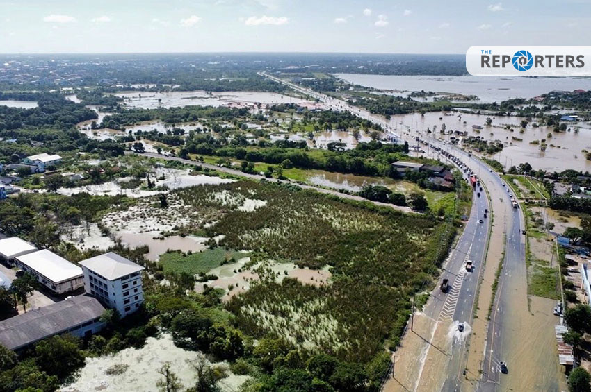 คันกั้นน้ำแก่งเลิงจานขาด น้ำทะลักเข้าท่วมถนนสายหลัก จ.มหาสารคาม