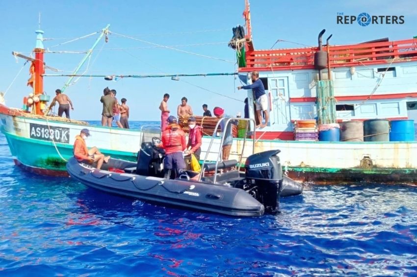 นายสมศักดิ์ ทองดอนเหมือน สัญชาติไทย ไต๋เรือที่ประสบเหตุ ให้ข้อมูลว่า ได้นำเรือประมงชื่อ “อาหลิว 999” ตัวเรือสีน้ำเงิน-ขาว เป็นเรือลอบปู มีลูกเรือ 8 คน เป็นชาวไทย 2 คน และชาวเมียนมา 6 คน ออกทำการการประมงอยู่บริเวณดังกล่าว ส่วนสาเหตุที่เรือจม เกิดจากไม้กระดานตรงท้องเรือแตกจนน้ำทะลักเข้าเรือ ไม่สามารถอุดได้ เป็นเหตุให้เรือจมลงในที่สุด จึงให้ลูกเรือทั้งหมดสวมเสื้อชูชีพและกระโดดน้ำลอยคออยู่ในทะเล จนกระทั่งได้รับการช่วยเหลือจากเรือประมงชื่อปัญจพล
