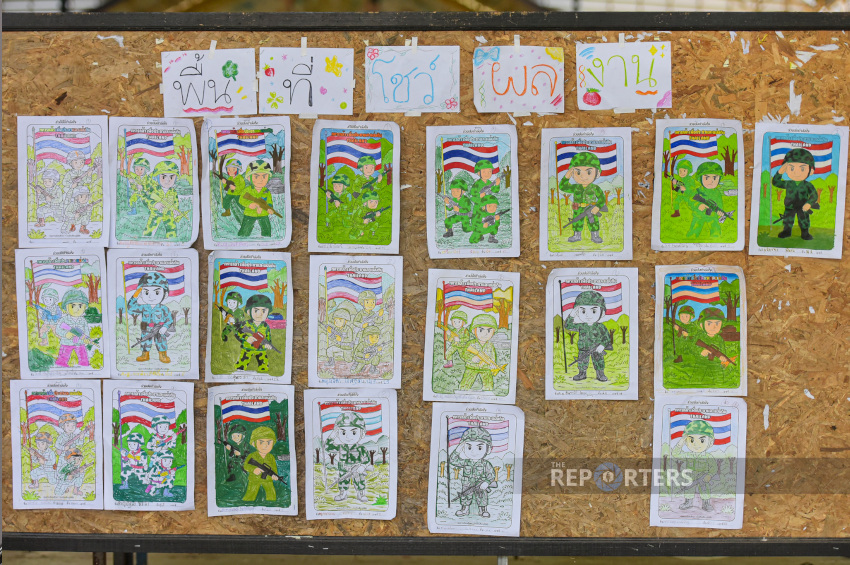 วันนี้ (7 ส.ค. 68) The Reporters ลงพื้นที่สำรวจความเป็นอยู่ของชาวบ้านในศูนย์พักพิง โดยนายบุญศักดิ์ บุญจูง ผู้อำนวยการโรงเรียนแห่งนี้ ให้สัมภาษณ์ว่า ศูนย์พักพิงแห่งนี้เปิดมาตั้งแต่วันที่ 26 กรกฎาคมที่ผ่านมา ซึ่งมีการเติมความพร้อมในเรื่องของบุคลากรเจ้าหน้าที่ทางการแพทย์ และสถานที่จุดรับรายงานตัว จุดพักนอน ห้องน้ำ ฝ่ายพยาบาล และฝ่ายครัว ซึ่งมีประมาณ 1,006 คน เป็นชาวบ้านจากตำบลด่าน อำเภอกาบเชิง และอำเภอบัวเชดบางส่วน ตั้งแต่เปิดศูนย์มาก็มีปัญหาบ้าง โดยเราใช้งบประมาณหลัก ๆ จากการบริจาคสิ่งของทำให้มีปัญหาในเรื่องของวัตถุดิบในการทำอาหาร และผู้อพยพที่มาอยู่มีอาการเจ็บป่วย ซึ่งผู้สูงอายุเราก็จะให้อยู่ในชั้นล่าง
