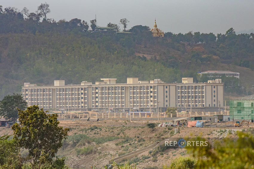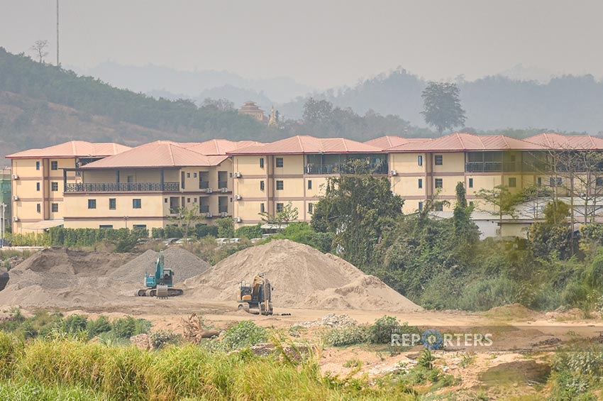 วันนี้ (8 ก.พ. 68) The Reporters ลงพื้นที่บริเวณชายแดนใน ต.แม่ปะ อ.แม่สอด จ.ตาก ซึ่งเป็นพื้นที่ตรงกันข้ามกับเขตเศรษฐกิจพิเศษ ชเวก๊กโก่ เมืองเมียวดี ประเทศเมียนมา พบว่า พื้นที่บริเวณนั้นยังคงมีการก่อสร้างอาคารอย่างต่อเนื่อง มีตึกที่มีโครงสร้างอาคารคล้ายกัน เป็นสี่เหลี่ยมสีเหลือง และมีหลังคาสีแดง ติดกันหลายแหล่ง ส่วนตึกที่สร้างอยู่ก็มีลักษณะแบบเดียวกัน