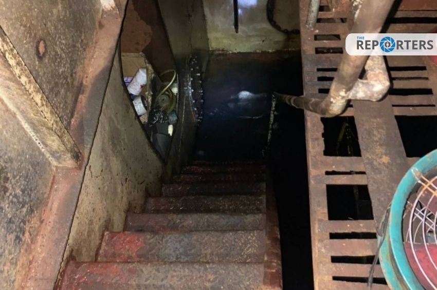 หลังส่งชุดตรวจค้นขึ้นทำการตรวจสอบ ไม่พบลูกเรือลำดังกล่าว ชื่อเรือ เลขเรือ และเอกสารทั้งหมดไม่ปรากฎ ส่วนอุปกรณ์เดินเรือทั้งหมดบนสะพาน ไม่สามารถใช้งานได้ มีเพียงไฟแบตเตอรี่ที่ทำงานได้ ทำให้ไฟยอดเสายังติดอยู่ ด้านห้องเครื่องจักรใหญ่และเครื่องไฟฟ้า ถูกน้ำท่วมขังทั้งหมด ไม่เห็นตัวเครื่องและไม่สามารถลงสำรวจได้ นอกจากนี้ยังพบว่ามีน้ำท่วมระวางขนถ่ายสินค้า มีกลิ่นน้ำมันเชื้อเพลิงกระจายทั่วไป
