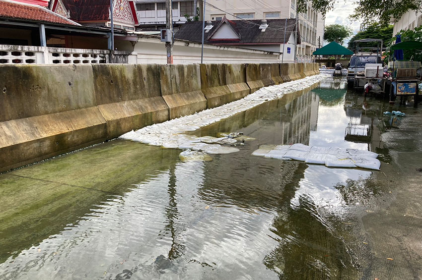 อย่างไรก็ตามเมื่อคืนนี้แนวคันกั้นน้ำหลายจุดมีปัญหากระสอบทรายเสียหาย สาเหตุเกิดจากระดับน้ำที่เพิ่มสูงขึ้น และน้ำทะลักคันกั้นน้ำออกมา เทศบาลนครนนทบุรีได้แก้ปัญหาด้วยการเสริมความแข็งแรงของกระสอบทรายเพิ่มเติมแล้ว