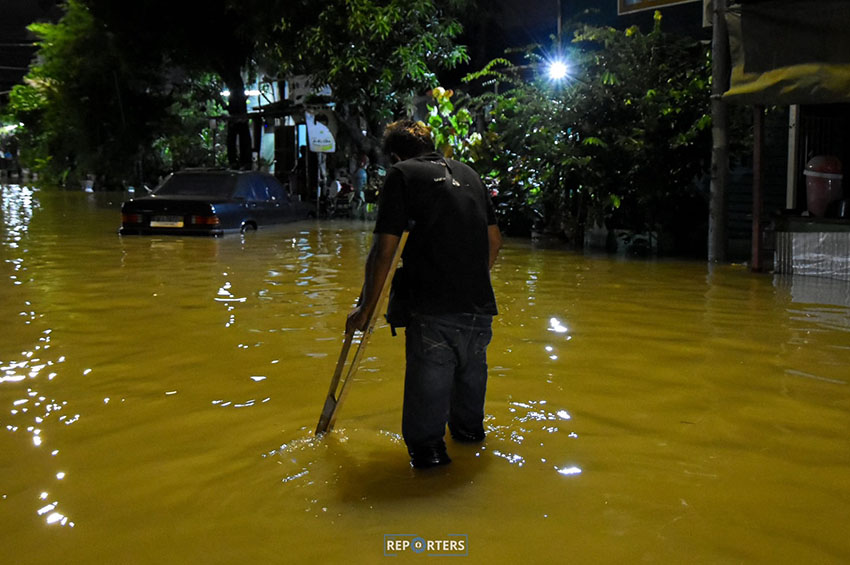 ชุมชนวัดเขมาภิรตาราม ซอยพิบูลสงคราม 3 เป็นหนึ่งในเขตพื้นที่ประสบสาธารณภัยของจังหวัดนนทบุรี ที่ยังรอความช่วยเหลือ The Reporters พบกับ “ลุงแป๊ว” ชายชราวัย 95 ปี นั่งอยู่บนกระสอบทรายหน้าบ้านชั้นเดียวที่ไร้ไฟฟ้า ภายในเต็มไปด้วยน้ำท่วมขัง จากการสอบถามพบว่า ลุงแป๊ว พักอาศัยที่บ้านหลังนี้คนเดียว เนื่องจากภรรยาเสียชีวิตเมื่อหลายปีก่อน ประสบปัญน้ำท่วมมานานนับสัปดาห์ ต้องอยู่แบบอดมื้อกินมื้อ บ้างก็กินน้ำเพื่อประทังชีวิต ซึ่งทางเทศบาลนครนนทบุรีแจ้งว่า จะเข้ามาช่วยเหลือดูแลเรื่องที่พักอาศัยให้ลุงแป๊วภายในพรุ่งนี้