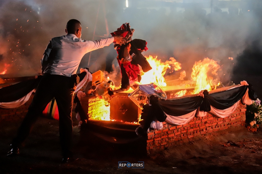 เวลา 17:30 น. ที่วัดราษฎร์สามัคคี มีการเคลื่อนศพผู้เสียชีวิตทั้ง 19 ร่าง จากศาลาการเปรียญสู่เตาเผาชั่วคราว (เชิงตะกอน) บริเวณสนามหญ้าวัดราษฎร์สามัคคี นำร่างสู่เตาเผา และนำสิ่งของรักของผู้วายชนม์มาวางไว้ที่หน้าเตาเผา เช่น รถจักรยาน รูปถ่าย ผ้าห่ม รถของเล่น ตุ๊กตา และสื่งของเครื่องใช้อื่นๆ รวมถึงสวมใส่ชุดอาชีพในฝันตามความปรารถนาของครอบครัวด้วย