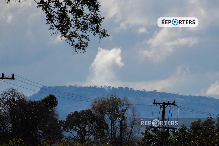 วันที่ 11 ธ.ค.68 เวลา 14.40 น.ระหว่าง The Reporters ลงพื้นที่ สำรวจความเสียหายบ้านเรือนประชาชนในตำบลภูผาหมอก อำเภอกันทรลักษ์ จังหวัดศรีสะเกษ จากการถูกโจมตีของกัมพูชาได้พบกลุ่มควันขนาดใหญ่