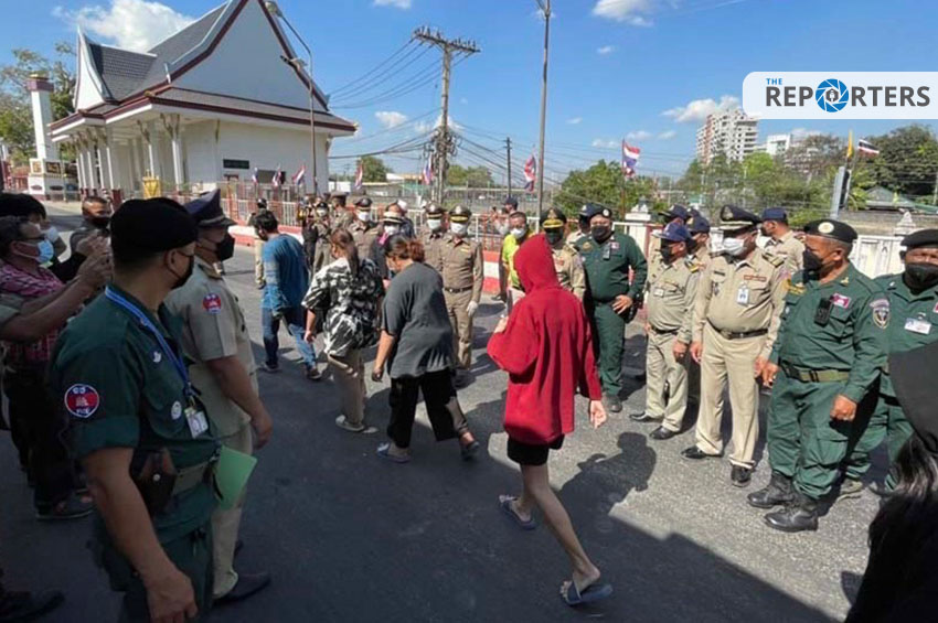 พล.ต.อ.ซอม วันวีเรี๊ยะ รองอธิบดีกรมตรวจคนเข้าเมืองกัมพูชา เป็นหัวหน้าคณะฯ นำคนไทยทั้ง 25 คน มาส่งมอบให้ พล.ต.ต.ณัฐพงษ์ สัตยานุรักษ์ ผบก.ภ.จว.สระแก้ว ที่เดินทางมารับมอบที่บริเวณกลางสะพานมิตรภาพไทย-กัมพูชา จุดผ่านแดนถาวรบ้านคลองลึก อ.อรัญประเทศ จ.สระแก้ว เพื่อนำเข้าสู่ขบวนการตรวจคัดกรองโควิด-19 ตามมาตรการของคณะกรรมการโรคติดต่อจังหวัดสระแก้ว ก่อนส่งตัวไปสถานที่กักตัว 14 วัน โดยจากนี้ ผบก.ภ.จว.สระแก้ว จะส่งพนักงานสอบสวนไปสอบสวนซักถามอย่างละเอียดอีกครั้ง เพื่อรวบรวมหลักฐานดำเนินคดีกับผู้กระทำผิด และขยายผลร่วมกับฝ่ายกัมพูชา