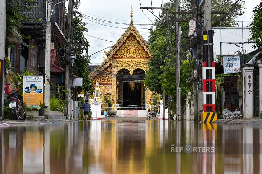 วันนี้ (12 ก.ย. 67) เวลา 10:00 น. ผู้สื่อข่าวรายงานสถานการณ์น้ำท่วมในพื้นที่บริเวณหอนาฬิกา ถนนเจ็ดยอด, ถนนประสพสุข ตำบลเวียง อำเภอเมืองจังหวัดเชียงราย ซึ่งเป็นจุดที่มีวัดเจ็ดยอด ตลาดไนท์บาร์ซ่าเชียงราย ปริมาณน้ำเพิ่มสูงขึ้นจากเมื่อคืน ทำให้ถนน และในซอยน้ำท่วมจนต้องปิดการจราจร รวมถึงบางช่วงของถนนที่การจราจรตัดขาด รถไม่สามารถผ่านไปได้ เพราะมีน้ำท่วมสูงประมาณหน้าเข้ง และส่งผลกระทบต่อร้านค้า สถานบริการบริเวณโดยรอบที่ต้องปิดลง ซึ่งพื้นที่บริเวณนั้น เป็นตัวเมืองชั้นในของจังหวัดเชียงราย และมีนักท่องเที่ยวชาวต่างชาติอยู่เยอะ