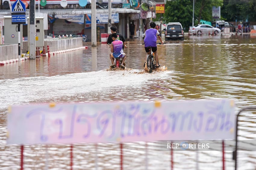 สำรวจเมืองชั้นในเชียงราย น้ำเริ่มผุดล้นท่อ ท่วมพื้นที่ถนน กระทบชาวบ้าน
