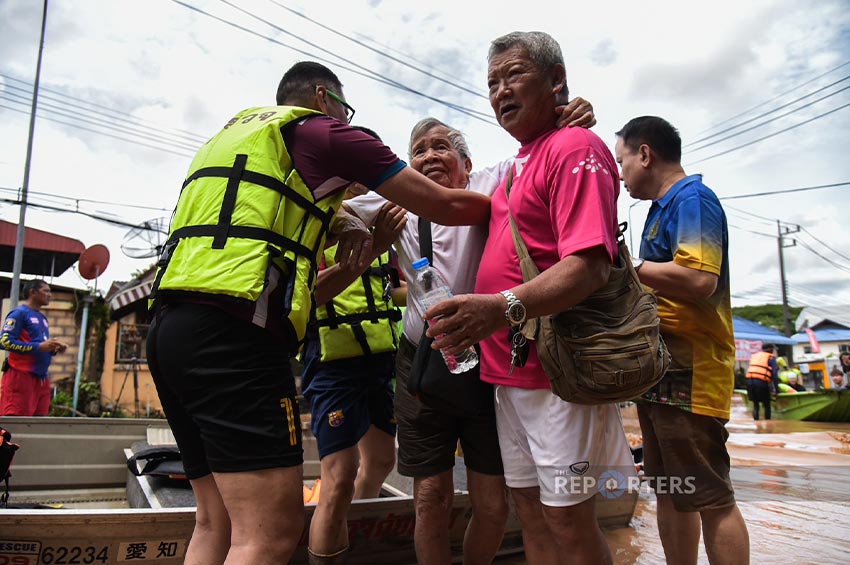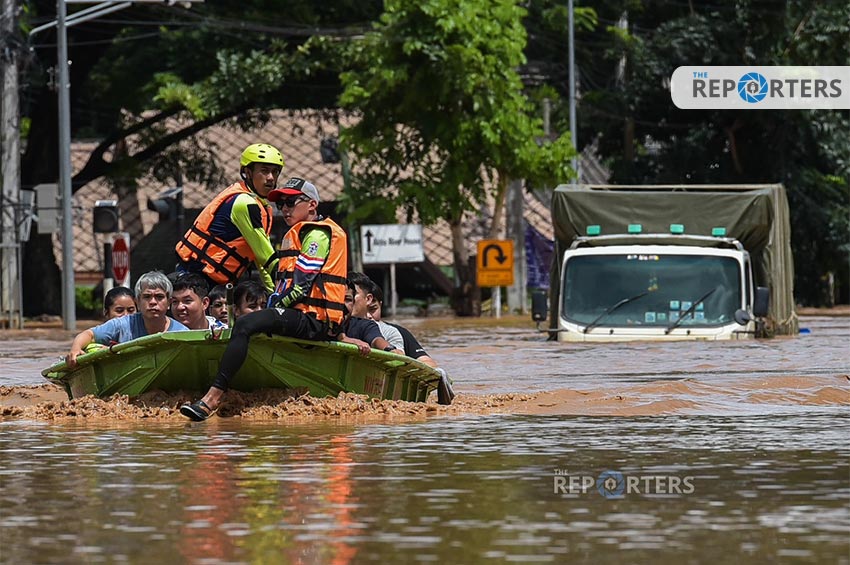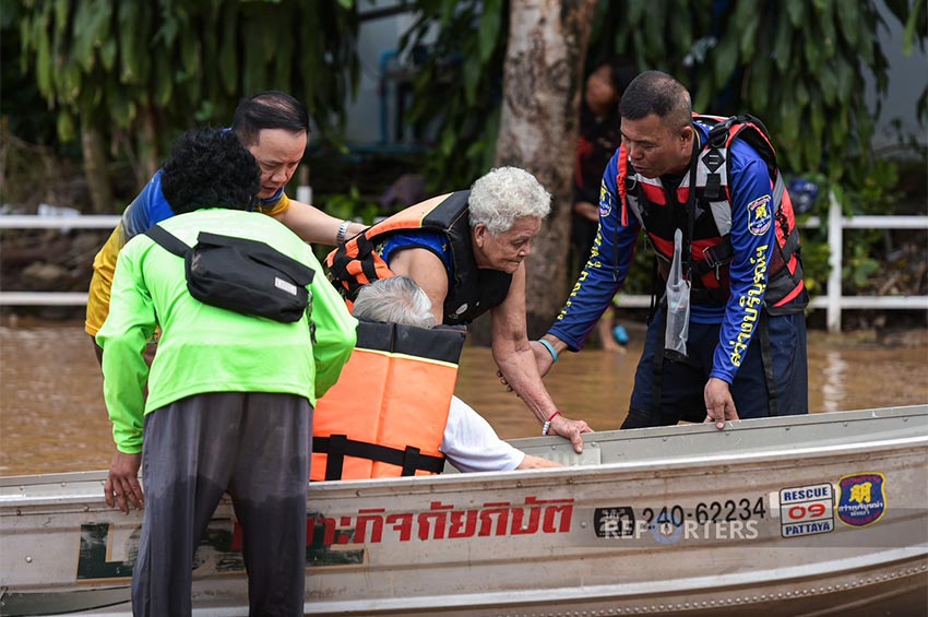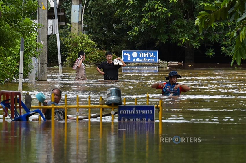 ถ.กลางเวียง สะพานขัวพญาเม็งราย น้ำเริ่มลด แต่ในชุมชนรอบข้างยังวิกฤติ กู้ภัยเข้าส่งอาหาร – อพยพผู้สูงอายุ