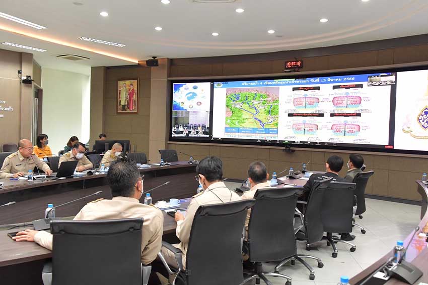 วันนี้ (13 มี.ค.66) ที่ศูนย์ปฏิบัติการน้ำอัจฉริยะ (SWOC) กรมชลประทาน ถนนสามเสน ดร.ธเนศร์ สมบูรณ์ ผู้อำนวยการสำนักบริหารจัดการน้ำและอุทกวิทยา เป็นประธานการประชุมคณะอนุกรรมการติดตามและวิเคราะห์แนวโน้มสถานการณ์น้ำ ผ่านระบบ Video Conference ไปยังสำนักงานชลประทานที่ 1-17 และหน่วยงานที่เกี่ยวข้อง อาทิ กรมอุตุนิยมวิทยา สถาบันสารสนเทศทรัพยากรน้ำ กรมทรัพยากรน้ำ กรมป้องกันและบรรเทาสาธารณภัย สำนักการระบายน้ำกรุงเทพมหานคร การไฟฟ้าฝ่ายผลิตแห่งประเทศไทย (กฟผ.) เพื่อติดตามและวิเคราะห์สถานการณ์น้ำในอ่างเก็บน้ำ แหล่งน้ำ และแม่น้ำสายหลักต่าง ๆ สำหรับเป็นข้อมูลในการบริหารจัดการน้ำให้สอดคล้องและเหมาะสมในแต่ละพื้นที่ต่อไป