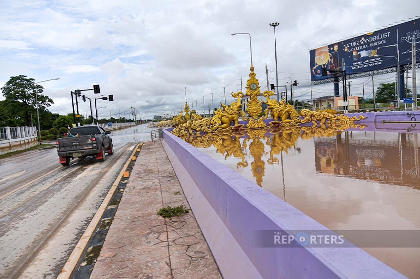 เมืองเชียงราย น้ำเริ่มลดแล้ว เปิดใช้บางช่องทางจราจรบนสะพานข้ามแม่น้ำกก