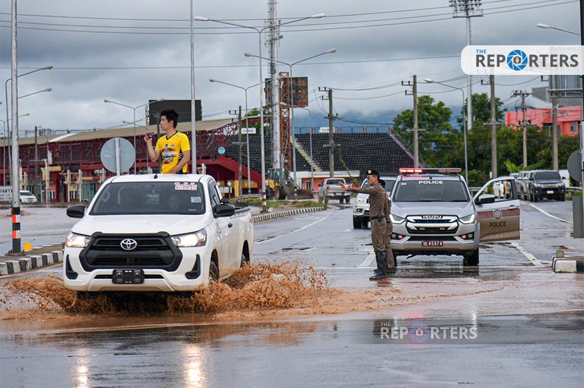 เมืองเชียงราย น้ำเริ่มลดแล้ว เปิดใช้บางช่องทางจราจรบนสะพานข้ามแม่น้ำกก