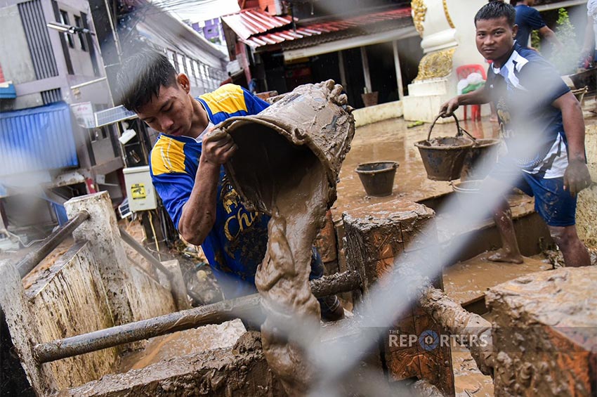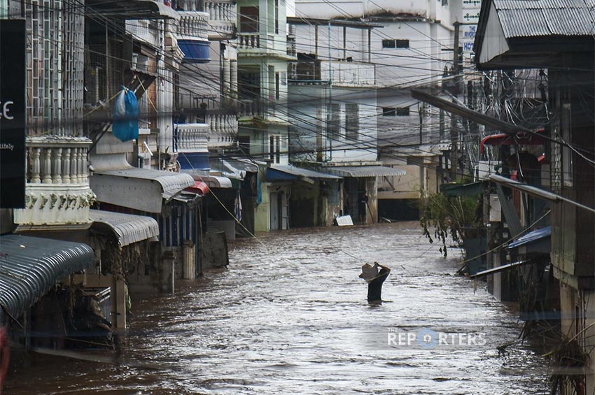เมืองท่าขี้เหล็ก-เมียนมา น้ำท่วมหนัก เร่งฟื้นฟูพื้นที่ พบดินโคลนสูงกว่า 2 เมตร