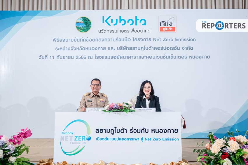 บริษัท สยามคูโบต้าคอร์ปอเรชั่น จำกัด จับมือ จังหวัดหนองคาย ลงนามบันทึกข้อตกลงความร่วมมือ ภายใต้โครงการ KUBOTA NET ZERO EMISSION เพื่อสร้างจังหวัดหนองคาย ให้เป็นเมืองต้นแบบปลอดการเผาสู่ Net Zero Emission” ซึ่งนับเป็นจังหวัดที่ 10 พร้อมกันนี้นำองค์ความรู้ KUBOTA (Agri) Solutions เกษตรครบวงจร มาใช้เพื่อแก้ปัญหามลพิษจากฝุ่นละออง ในภาคการเกษตร ตลอดจนบริหารจัดการ วัสดุเหลือใช้ทางการเกษตร เพื่อสร้างโลกเกษตรที่ยั่งยืน