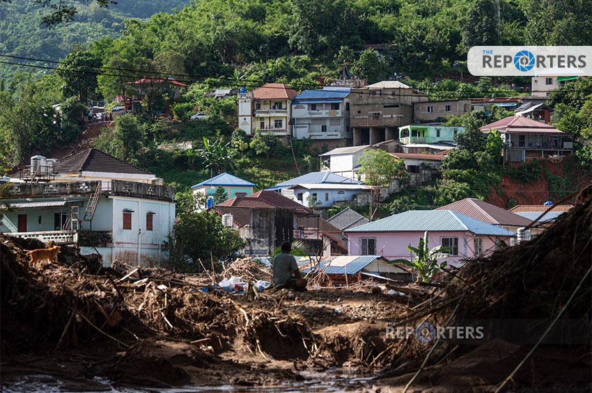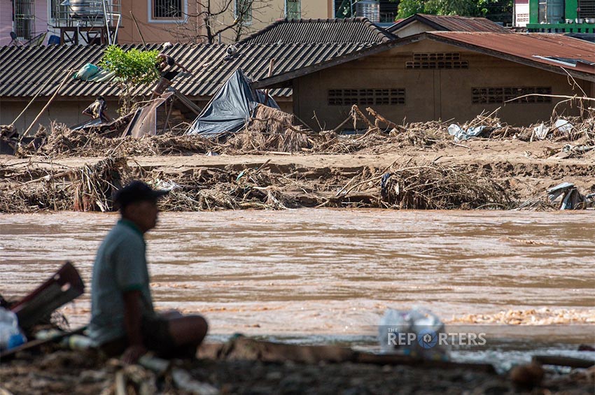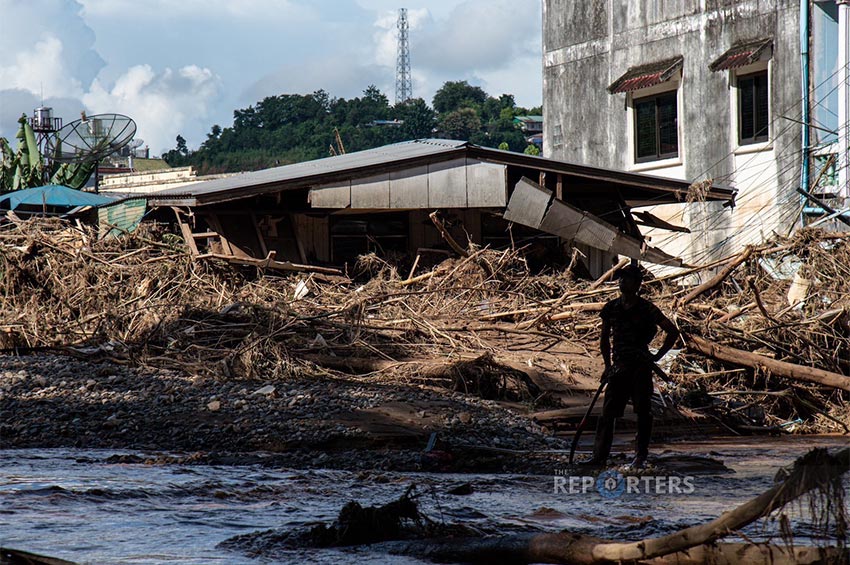 วันนี้ (14 ก.ย. 67) The Reporters ลงพื้นที่สำรวจ ความเสียหายรอบข้างริมแม่น้ำสาย ทั้งในหัวฝาย อำเภอแม่สาย ประเทศไทย และท่าขี้เหล็ก ประเทศเมียนมา ภายหลังจากปริมาณน้ำเริ่มลดระดับลงแล้ว แต่น้ำในแม่น้ำยังคงไหลเชี่ยวแรงอยู่ โดยพบว่า มีเศษซากกิ่งไม้ ท่อนไม้ และขอนไม้ติดค้างอยู่ที่บริเวณบ้านเรือนประชาชน ทำให้บ้านเรือนพังเสียหาย