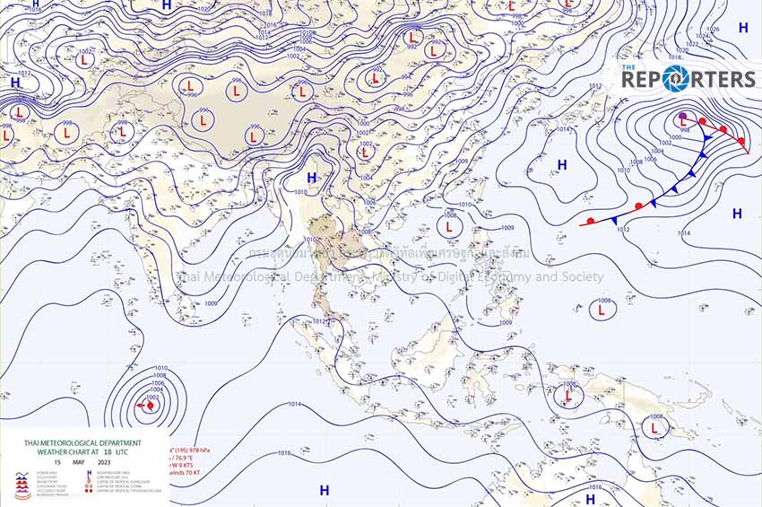 วันนี้ (16 พ.ค. 66) กรมอุตุนิยมวิทยา พยากรณ์อากาศ 24 ชั่วโมงข้างหน้าว่า ลมตะวันตกเฉียงใต้พัดปกคลุมบริเวณประเทศไทย ลักษณะเช่นนี้ทำให้บริเวณดังกล่าวยังคงมีฝนฟ้าคะนอง ขอให้ประชาชนในบริเวณประเทศไทยระวังอันตรายจากฝนฟ้าคะนองที่เกิดขึ้นในระยะนี้ไว้ด้วย โดยเกษตรกรควรเตรียมการป้องกันและระวังความเสียหายที่จะเกิดต่อผลผลิตทางการเกษตร