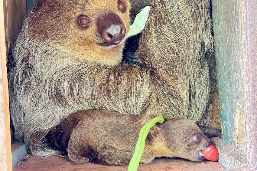 ลูกสลอธน้อยลืมตาดูโลกเมื่อวันที่ 1 มีนาคมที่ผ่านมา แม้ยังไม่สามารถระบุเพศได้ แต่มีสุขภาพแข็งแรง ผลการตรวจเมื่อวันที่ 15 มีนาคม 2569 มีน้ำหนัก 575 กรัม และยังคงเกาะติดหน้าท้องแม่ตลอดเวลา ซึ่งเป็นพฤติกรรมตามธรรมชาติ