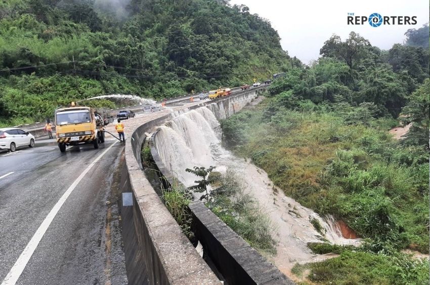 ถนนตาก-แม่สอด กลายสภาพเป็นน้ำตก