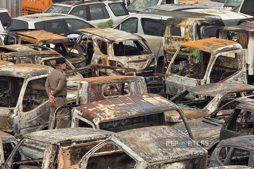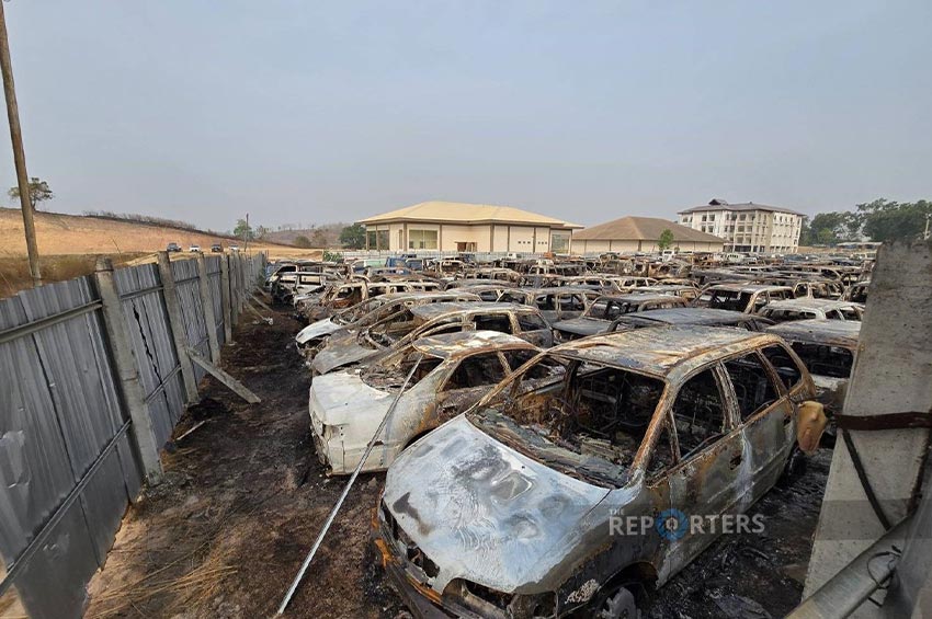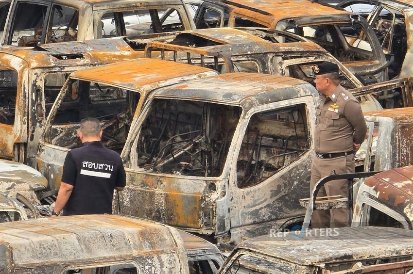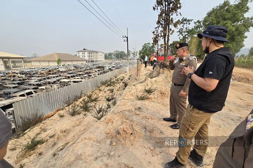 ตำรวจ สภ.แม่สอด เร่งหาสาเหตุเพลิงไหม้รถยนต์กว่า 200 คัน ในลานจอดรถของกลางรอประมูล