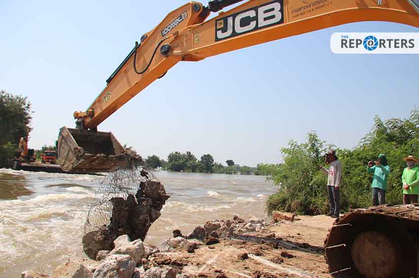 กาฬสินธุ์ หยุดการกัดเซาะเพิ่ม หลังพนังกั้นน้ำชีขาดได้แล้ว แต่ยังอุดรอยขาดไม่ได้ จากมวลน้ำที่ไหลเชี่ยว