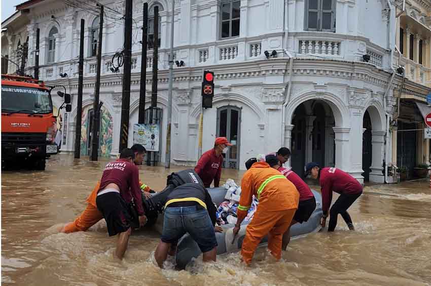 เมื่อสุดสัปดาห์ที่ผ่านมา ได้ระดมกำลังเจ้าหน้าที่จากศูนย์การค้าเซ็นทรัล ภูเก็ต จำนวน 20 นาย ซึ่งมีประสบการณ์และความเชี่ยวชาญในการดูแลช่วยเหลือประชาชน จากเหตุการณ์ต่างๆ ได้ให้การช่วยเหลือและบรรเทาสาธารณภัยแก่ชาวบ้านบริเวณย่านเมืองเก่าภูเก็ต โดยนำกระสอบทรายไปวางหน้าบ้าน เคลื่อนย้ายผู้ป่วยติดเตียง รวมถึงอำนวยความสะดวกด้านอื่นๆ จากเหตุการณ์ฝนตกหนักและน้ำทะเลหนุนจึงเกิดน้ำท่วมกระจายวงกว้างในหลายพื้นที่ถือว่า หนักสุดในรอบ 30 ปีในจังหวัดภูเก็ต