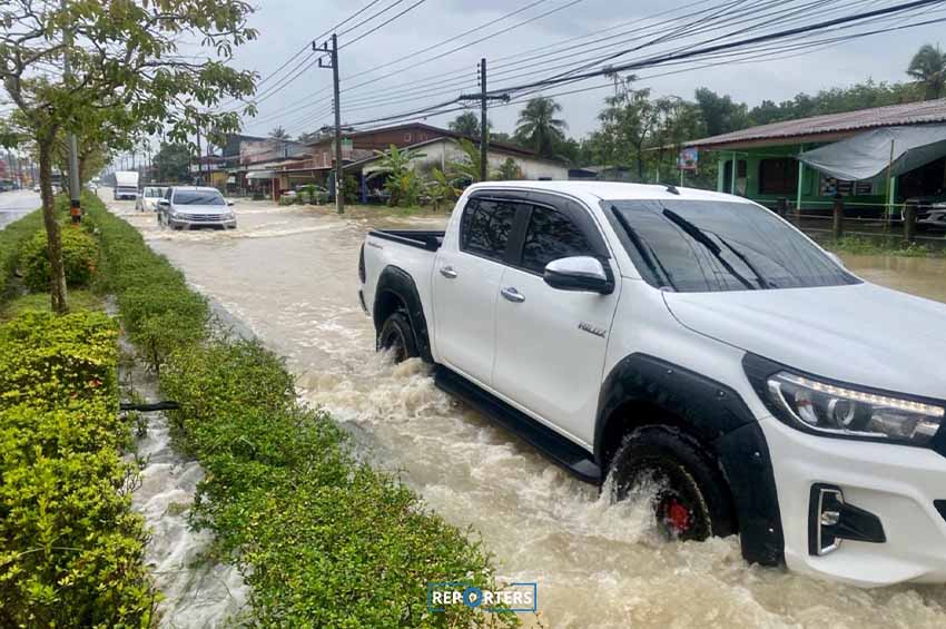 วันนี้ (20 ธ.ค. 65) ผู้สื่อข่าว The Reporters สำรวจสถานการณ์น้ำท่วมในพื้นที่เทศบาลตำบลกำแพงเพชร อ.รัตภูมิ จ.สงขลา พบว่ายังมีน้ำท่วมขังบนถนนหมายเลข 406 แยกคูหา-สตูล ตั้งแต่ช่วงหน้าปากซอยวัดห้วยหลาดถึงบริเวณแยกถนนศรีกาญจนะ รถเล็กสัญจรลำบาก มีการปิดเบี่ยงเส้นทางมาใช้ฝั่งที่มุ่งหน้าไปทางจังหวัดสตูล และท่วมสูงภายในชุมชนซอยวัดห้วยหลาด ที่อยู่ริมคลองภูมี ซึ่งรับน้ำจากเขาพระ ไหลออกทะเลสาบสงขลาทาง อ.ควนเนียง จ.สงขลา