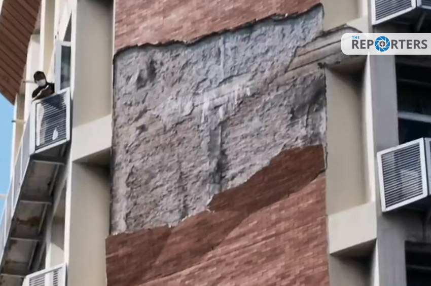 ในที่เกิดเหตุ มีลักษณะเป็นอาคารสูง 10 ชั้น ผนังคอนกรีตบริเวณชั้นที่ 8 หลุดร่อน ร่วงลงมาใส่ผู้ที่อยู่ด้านล่างในช่วงเวลาดังกล่าว ได้รับบาดเจ็บ 5 ราย จึงนำตัวส่งโรงพยาบาลกล้วยน้ำไท 3 ราย ส่วนอีก 2 รายทำการปฐมพยาบาลในที่เกิดเหตุ