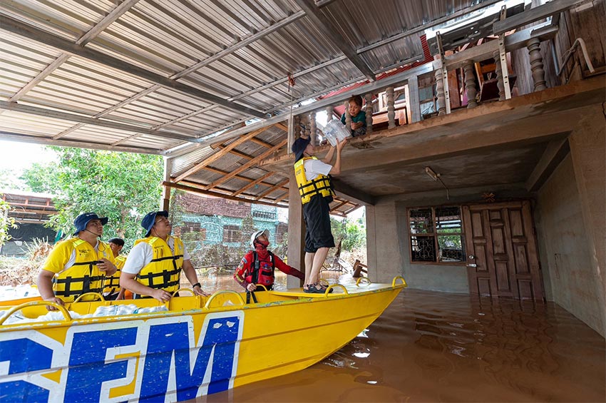 ส่วนที่ จ.แพร่ ซึ่งมีระดับน้ำสูงมากขึ้นเรื่อยๆ ได้ร่วมกับเครือข่ายกู้ภัยในจังหวัดนำความช่วยเหลือเข้าไปยังพื้นที่ประสบภัย โดยใช้ตัวแทนจำหน่ายของบริษัทฯ ที่อยู่ในพื้นที่แต่ละจังหวัดเป็นจุดหลักในการส่งมอบความช่วยเหลือผ่านการทำงานร่วมกับจังหวัด เครือข่ายนักศึกษา เครือข่ายกู้ภัย ไปยังพื้นที่ประสบภัย