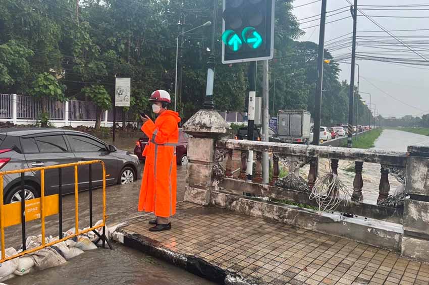 กลุ่มงานจราจร ตำรวจภูธรจังหวัดเชียงใหม่ รายงานว่า เวลา 07.35 น. สภาพการจราจรหน้าการท่าอากาศยานเชียงใหม่ ไปทางแยกวงแหวนสนามบิน มีฝนตกหนักมีน้ำท่วมขังรอการระบาย มีเจ้าหน้าที่ตำรวจจราจรและหน่วยงานที่เกี่ยวข้อง คอยอำนวยความสะดวกการจราจร