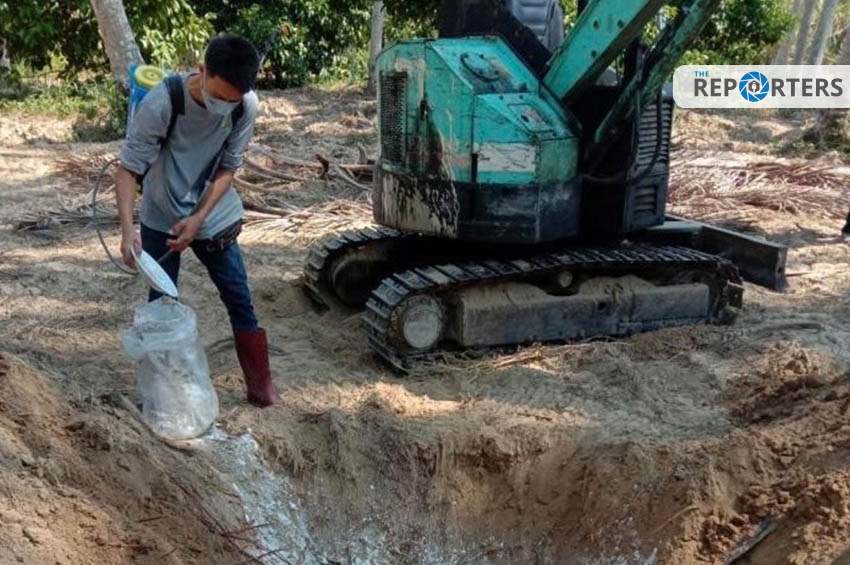 ด้านงานป้องกันและบรรเทาสาธารณภัย อบต.อ่างทอง อ.ทับสะแก นำเจ้าหน้าที่ตรวจสอบการฝังซากหมูที่ฟาร์มหมู่ 5 หลังจากได้รับแจ้งว่ามีหมูตายจากโรคระบาด 58 ตัว เพื่อไม่ให้มีผลกระทบกับสิ่งแวดล้อมและประชาชนในพื้นที่ใกล้เคียง พร้อมกับแจ้งให้เจ้าของฟาร์มใช้เครื่องจักรกลขนาดใหญ่ขุดหลุมให้ลึก โรยปูนขาวฆ่าเชื้อ ไม่ควรนำซากไปผังกลบในที่ลุ่มต่ำ ป้องกันฝนตกในพื้นที่ จนมีน้ำท่วมหลุมฝังกลบ