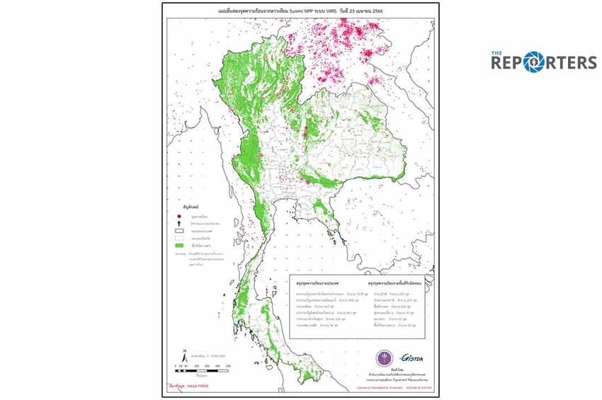 ‘GISTDA’ เผย ข้อมูลจากดาวเทียมซูโอมิ เอ็นพีพี (Suomi NPP) ของวันที่ 23 เมษายน 66 ไทยพบจุดความร้อนลดลงเหลือ 867 จุด สาเหตุส่วนหนึ่งที่จุดความร้อนไทยลดลงมาจากหลายพื้นที่ตอนบนเกิดฝนตก เนื่องจากพายุฤดูร้อน ในขณะที่จุดความร้อนของประเทศเพื่อนบ้านอย่าง สปป.ลาว ครองอันดับหนึ่งอยู่ที่ 3,139 จุด, พม่า 888 จุด, เวียดนาม 463 จุด, กัมพูชา 160 จุด และ มาเลเซีย 56 จุด