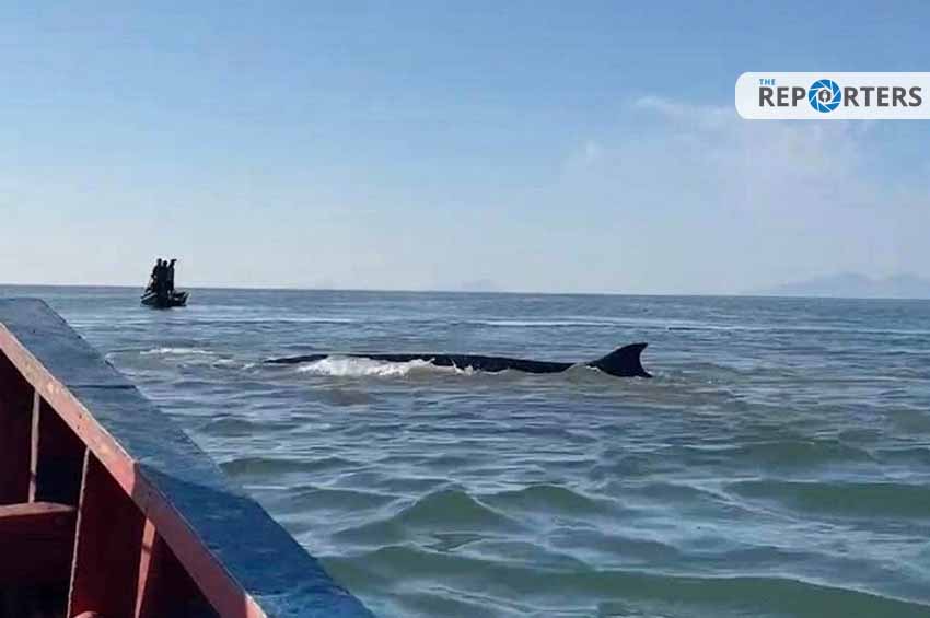 ผลักดันวาฬบรูด้าคืนทะเล หลังเกยตื้นปากคลองอ่าวกรูด
