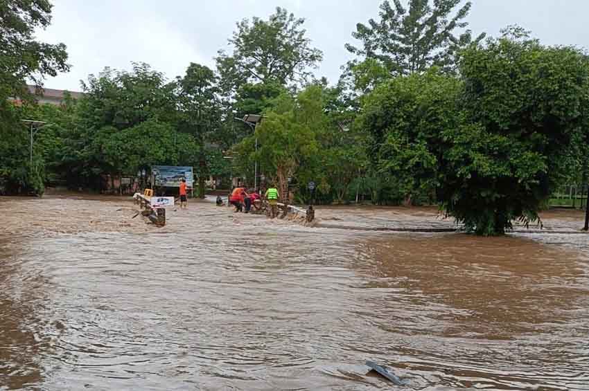 น้ำป่าจาก อช.เขาใหญ่ ไหลทะลักท่วมบ้านเรือนในพื้นที่ จ.นครนายก