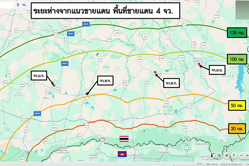 พื้นที่ที่ต้องเฝ้าระวัง ได้แก่พื้นที่ อ.กันทรลักษ์ จ.ศรีสะเกษ พื้นที่ อ.กาบเชิง และ อ.พนมดงรัก จ.สุรินทร์ คาดว่ากำลังของฝ่ายกัมพูชาจะใช้การยิงปืนใหญ่ เพื่อมุ่งทำลายชีวิตและทรัพย์สินของพลเรือน เพื่อกดดันทางการเมือง ให้รัฐบาลไทยตัดสินใจยุติการต่อสู้ ในสภาพเสียเปรียบ