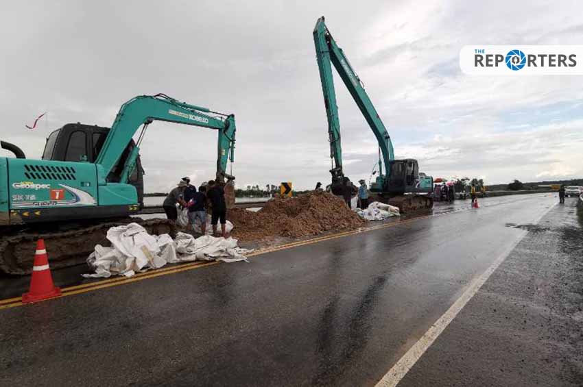 เร่งซ่อมคันดินกั้นลำน้ำเสียว หลังน้ำมูลเซาะจนพังยาว 30 เมตร คาด แล้วเสร็จวันนี้