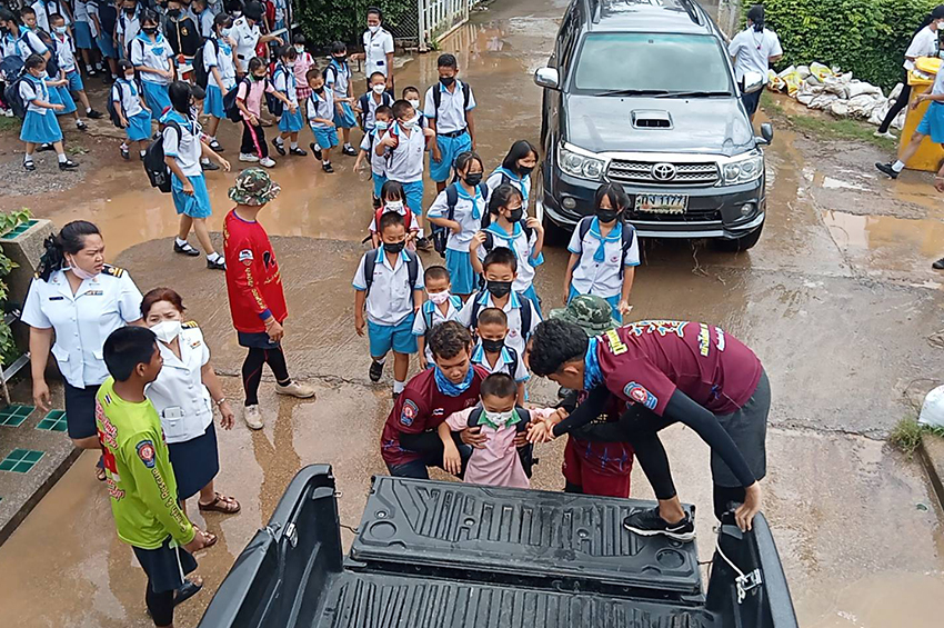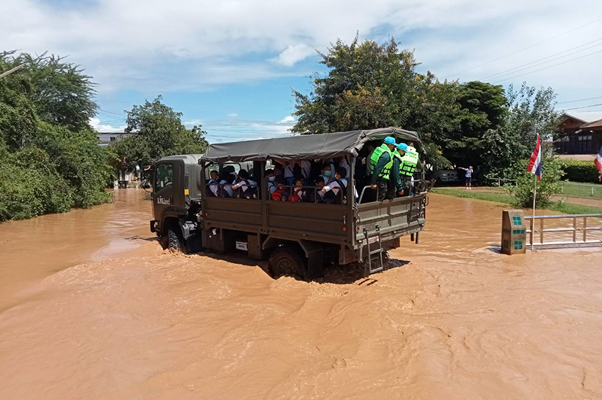 ทหาร-ปภ.เพชรบูรณ์ เร่งอพยพครูและนักเรียน หลังแม่น้ำป่าสัก เพิ่มระดับเข้าท่วมโรงเรียน