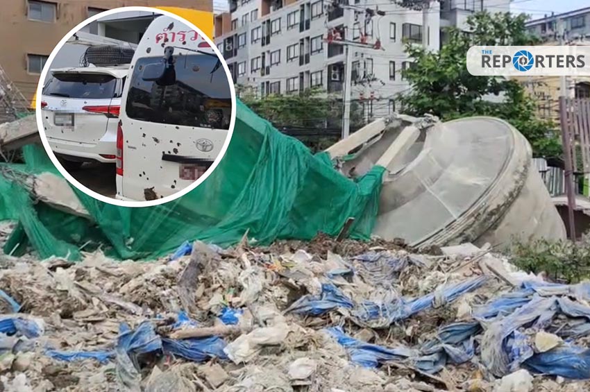ถังเก็บน้ำคอนกรีต ถล่มโคลน-หิน กระเด็นใส่รถ เสียหายนับ 10